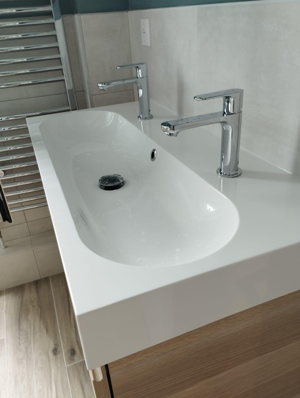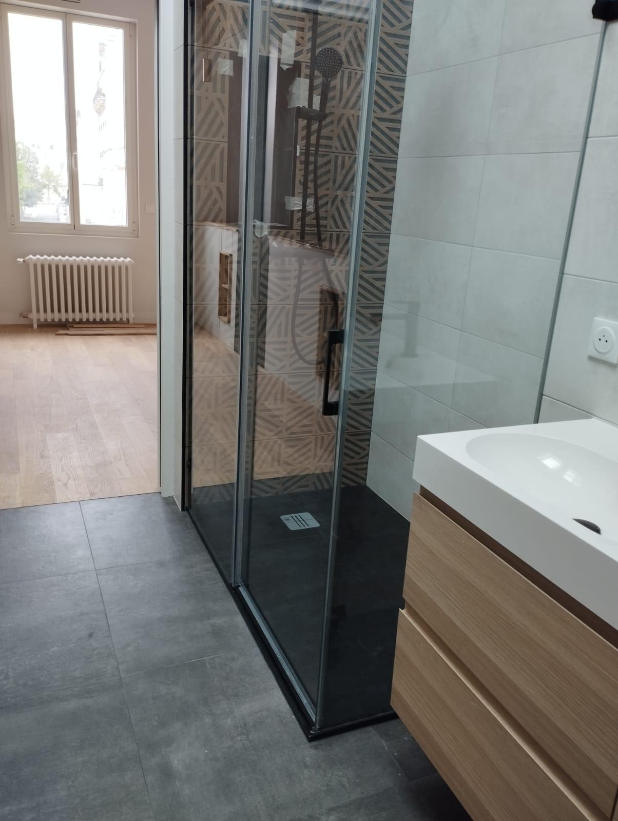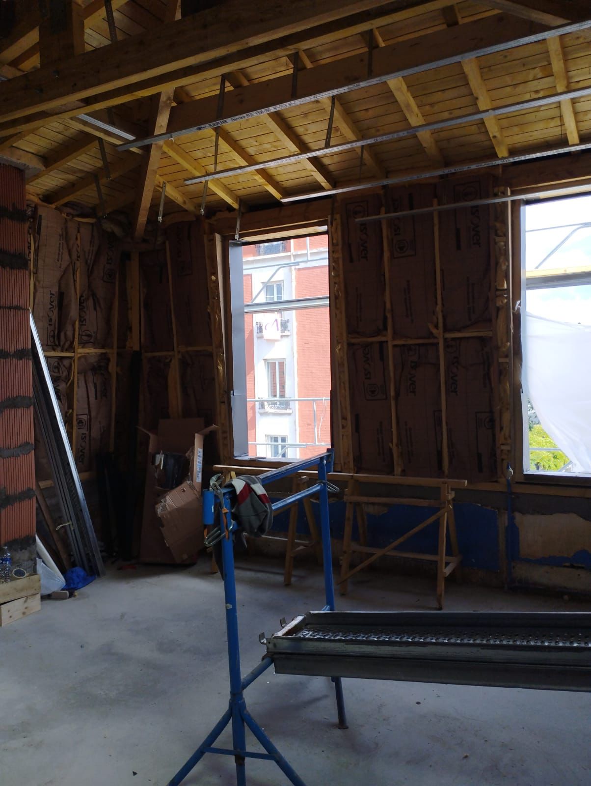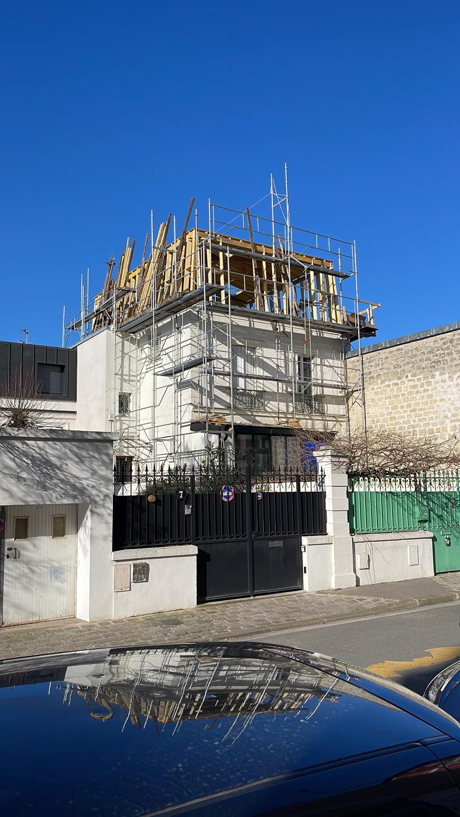 – Cette extension a nécessité la dépose intégrale de la toiture et des combles pour la création d’un toit à la Mansart ainsi qu’un réaménagement sur 180 m². Une large baie a été créée sur la façade au rez-de-chaussée afin d’optimiser la luminosité naturelle.