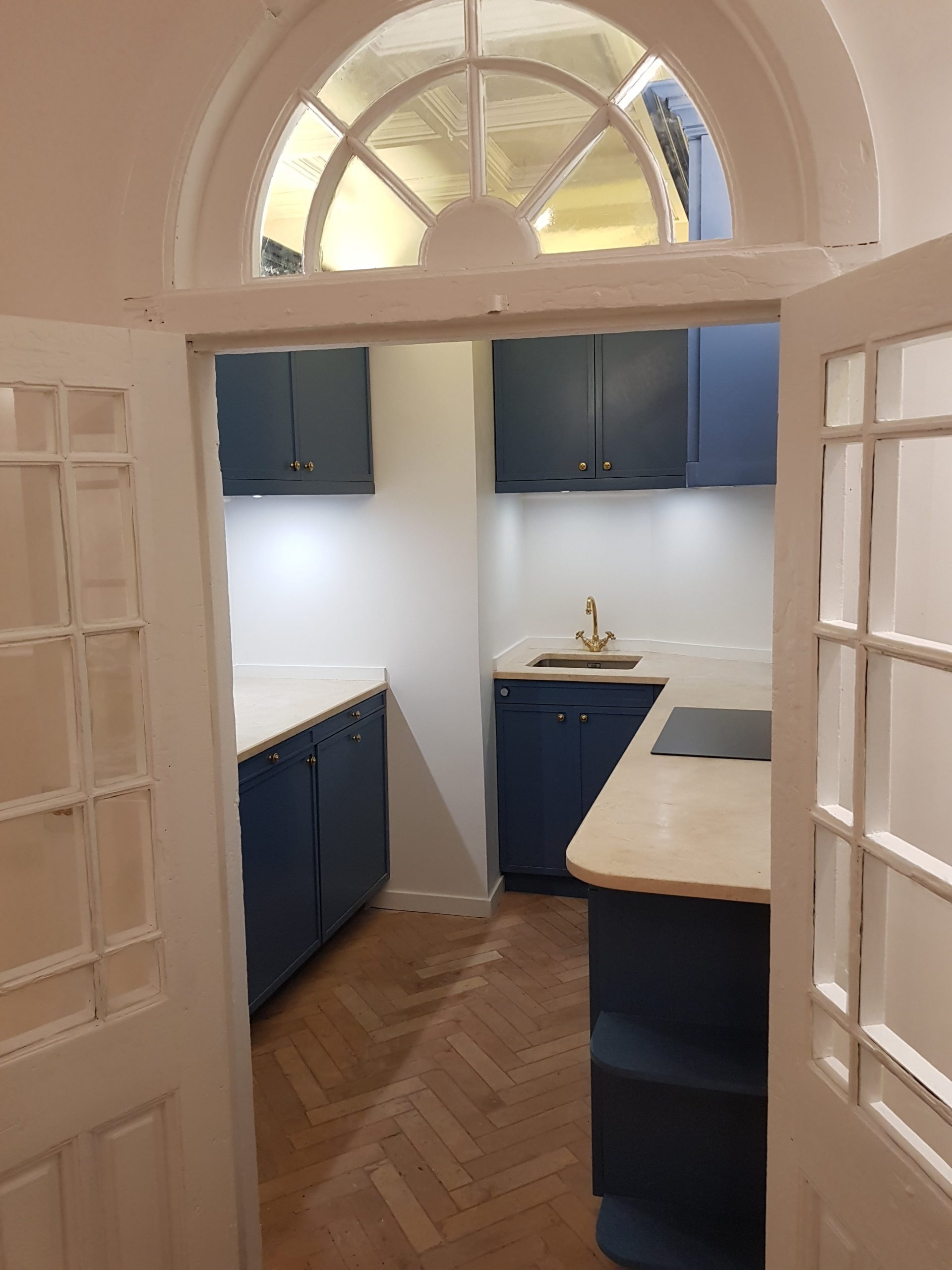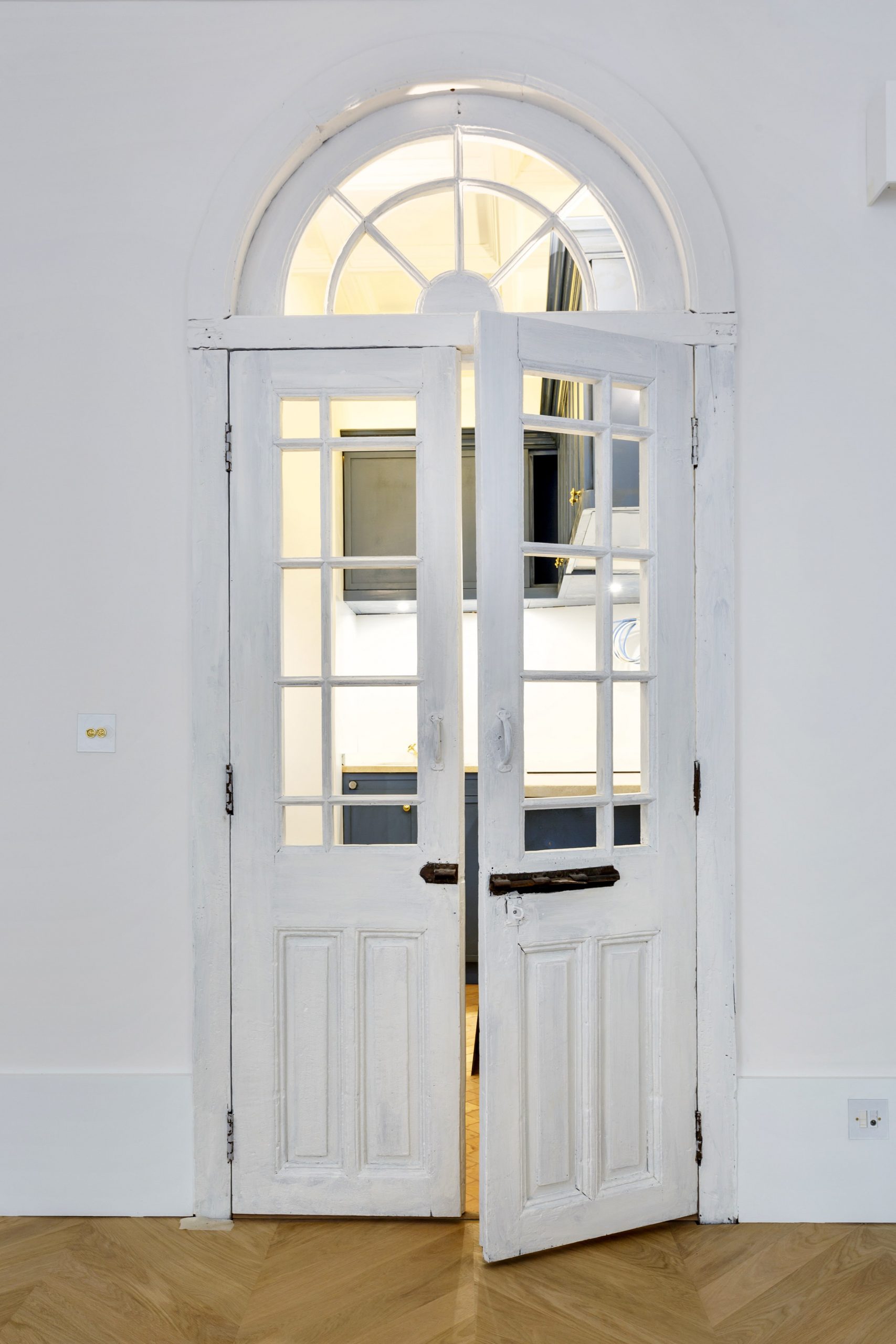 – une porte ancienne, chinée par le client, soigneusement restaurée et adaptée pour sublimer l’entrée de la cuisine.